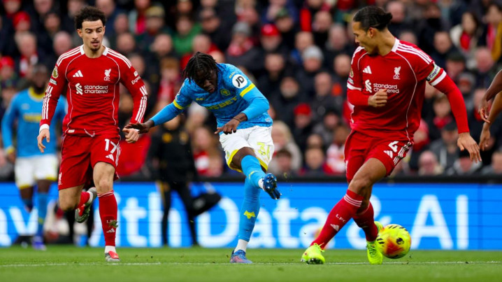 第26分钟,利物浦卷土重来,麦卡利斯特的劲射同样击中立柱,但裁判吹罚基耶萨在门前干扰了若泽萨,越位在先。